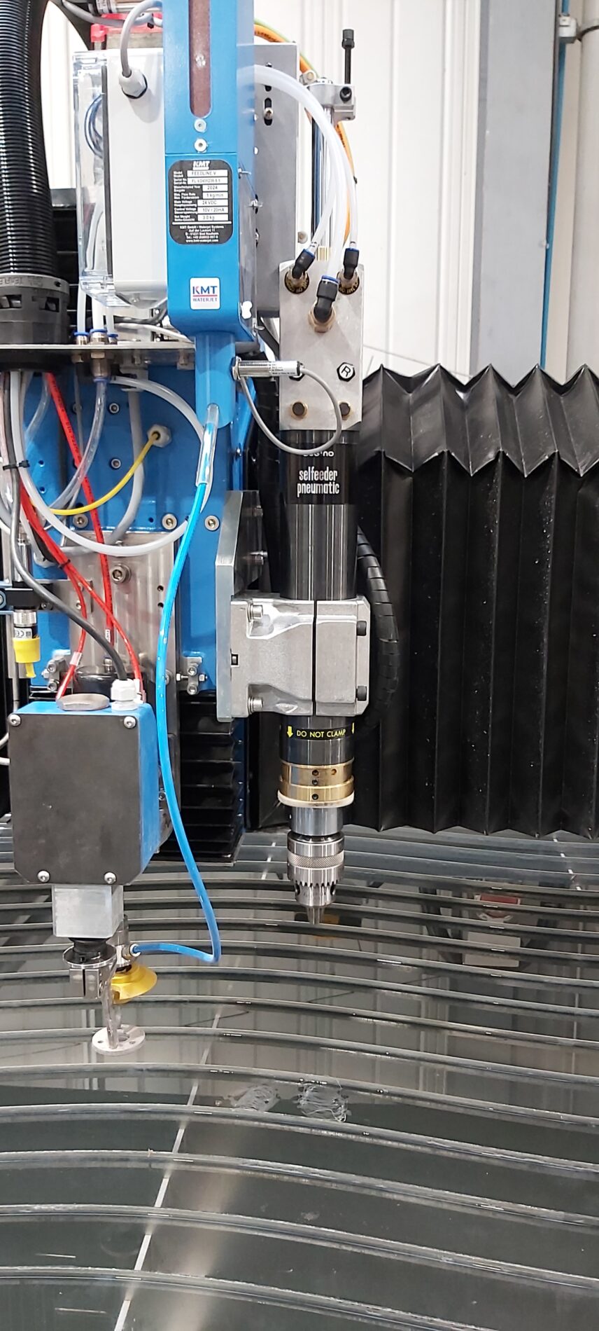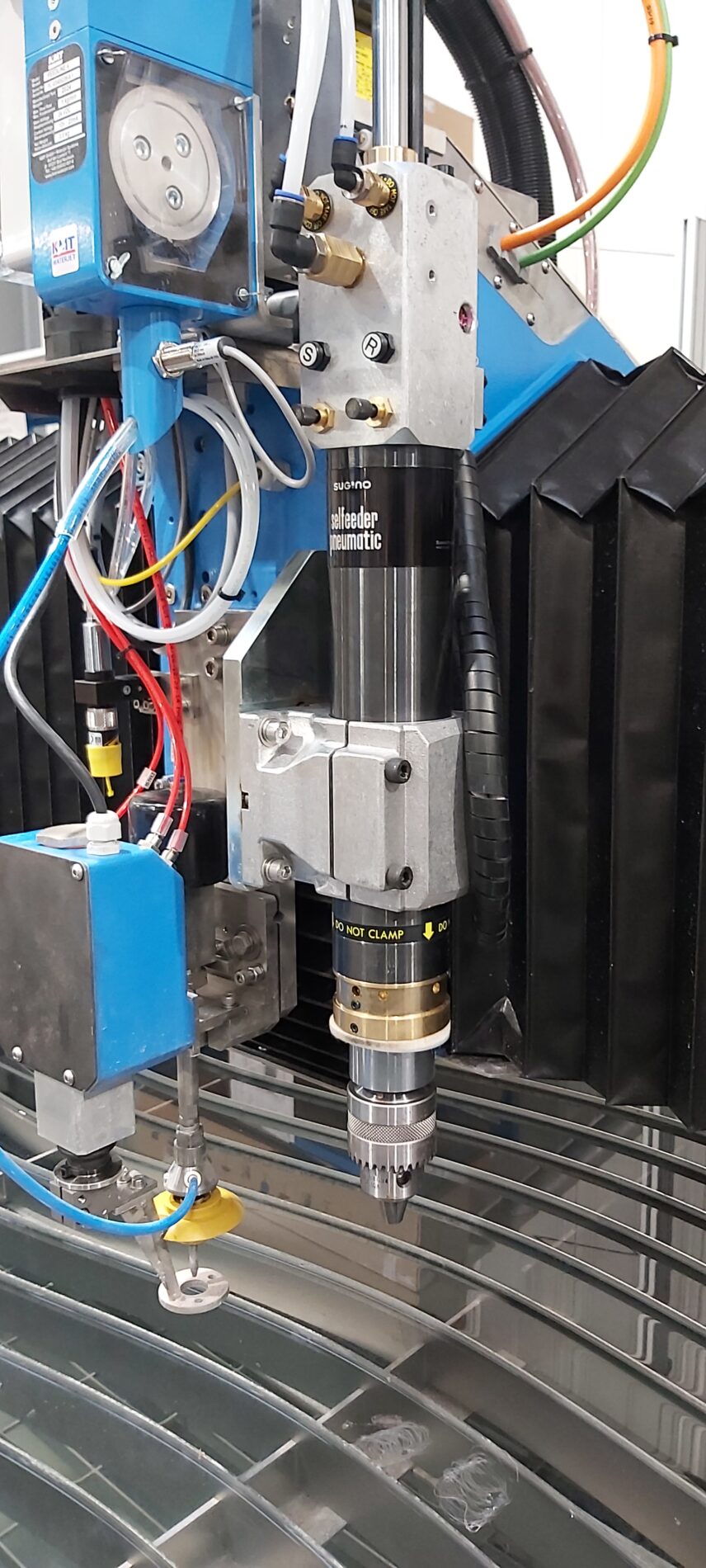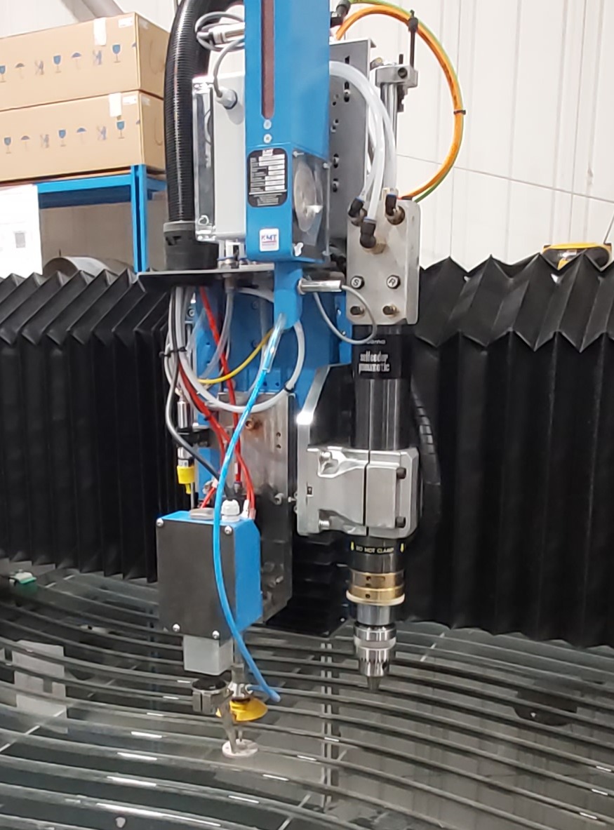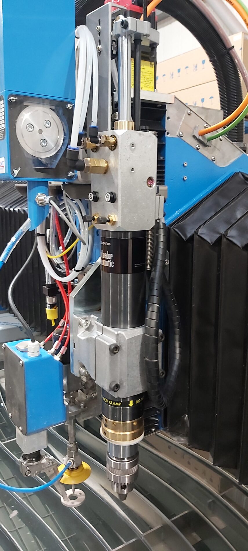 This system allows for drilling operations before cutting, for example to avoid delamination phenomena.